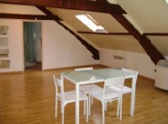 Appartement de type t2 en duplex, comprenant un séjour, une cuisine américaine, et à l'étage une chambre et une salle de bain.